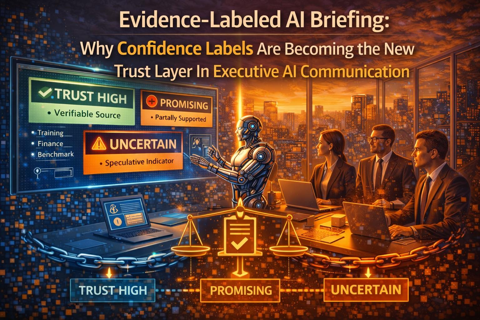 The next evolution in AI communication is straightforward: evidence-labeled briefings. Every major claim carries a confidence tag, source-quality marker, and uncertainty note. This is not academic rigor theater. It is an operational control mechanism for faster, safer decision-making. Organizations that adopt this discipline will make better bets, waste less capital, and build the credibility that — in a world where 73% of B2B buyers trust thought leadership over marketing materials — converts directly to commercial advantage.