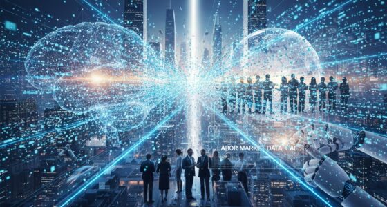 Generative AI transforms traditional job roles by automating routine tasks, allowing you to focus on strategic, creative, and complex activities. It shifts workforce dynamics, making skills like oversight, data analysis, and human-AI collaboration more valuable. You might find your role evolving to include managing AI tools or interpreting AI-generated insights. Embracing these changes helps you stay relevant, boost productivity, and open new opportunities within your organization.