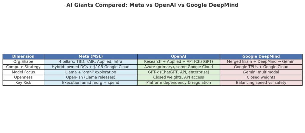 DimensionMeta (MSL)OpenAIGoogle DeepMind
