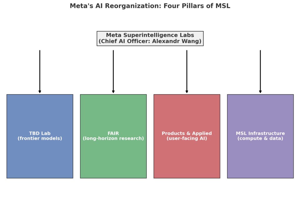 Meta’s AI ambitions are nothing short of superintelligence at consumer scale. The new four-pillar structure clarifies the pipeline from research → training → product → infrastructure. But clarity on paper is not the same as execution in reality.