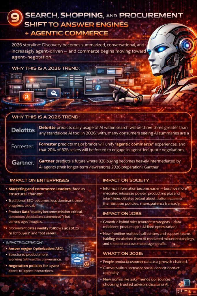 9) Search, shopping, and procurement shift to answer engines + agentic commerce