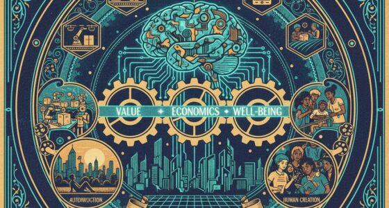 As automation reshapes workplaces, you’ll need new skills like creativity, ethical judgment, and digital collaboration to stay relevant. Emerging roles such as AI-assisted design and human-robot collaboration offer exciting opportunities, but they also require continuous reskilling. By embracing ongoing learning and developing strong human-AI teamwork, you can thrive in this evolving landscape. Developing a deeper Self-Understanding can further enhance your adaptability and personal growth in this new environment. Additionally, understanding automation in business can help individuals anticipate industry changes and identify new opportunities for growth.
