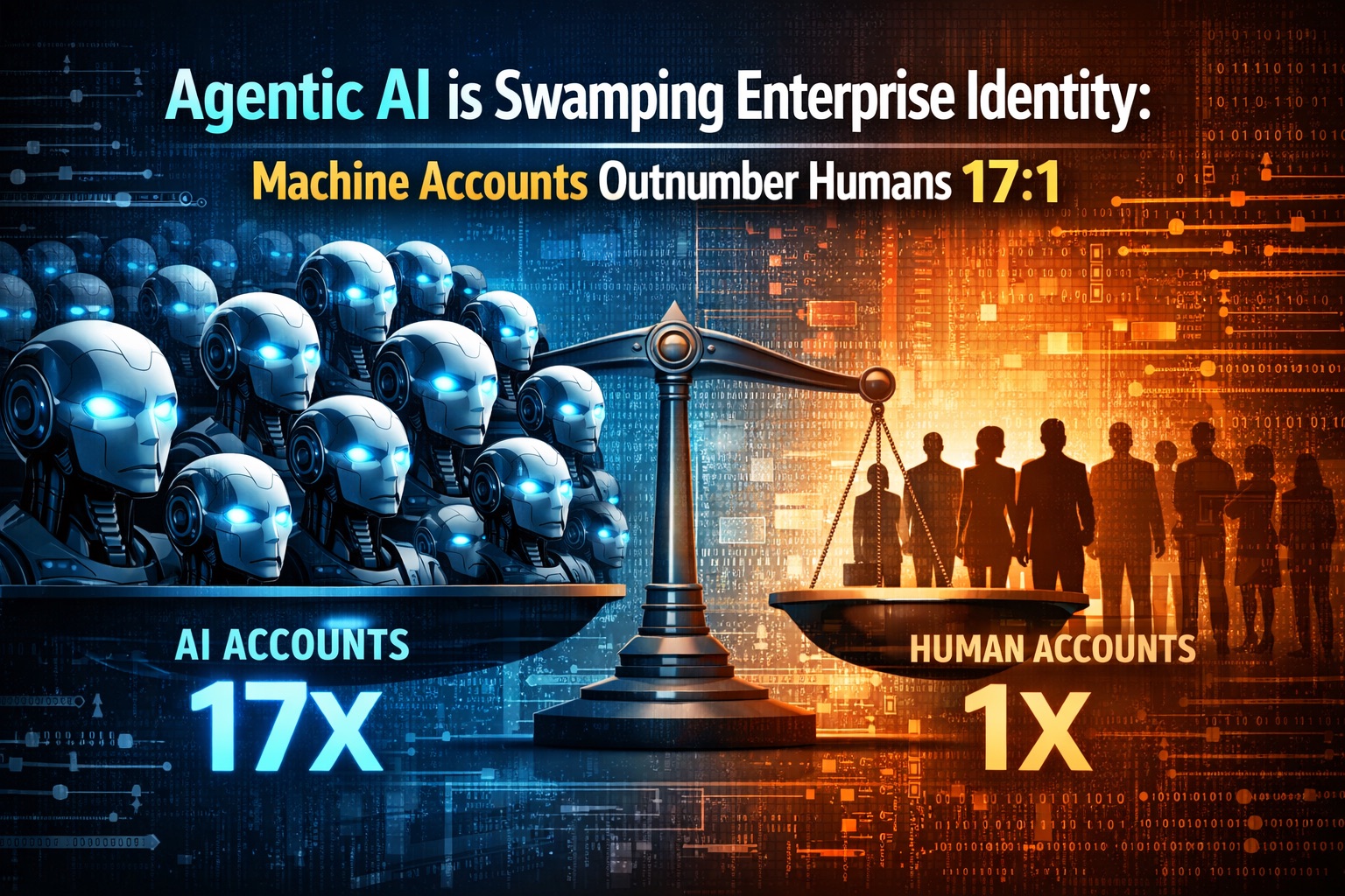 Agentic orchestration spins up transient processes, each needing credentials. Ratios of machine-to-human identities now exceed 17:1 in large orgs, driven by cloud, CI/CD, and AI agents.