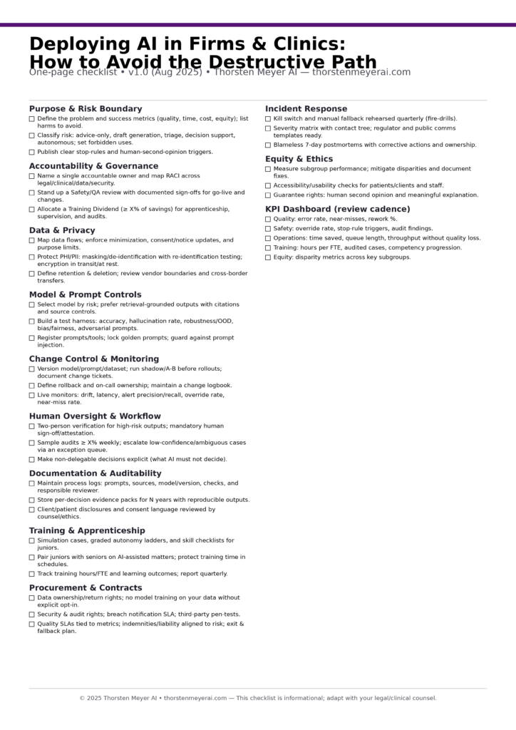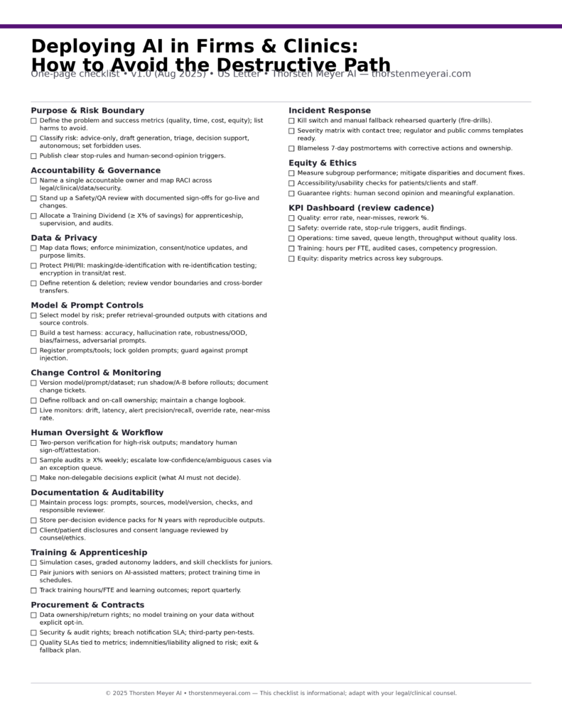 Deploying AI in Firms & Clinics: How to Avoid the Destructive Path One‑Page Checklist