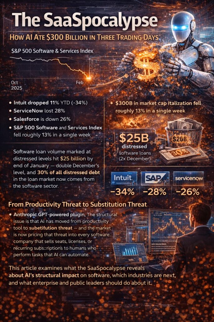 This article examines what the SaaSpocalypse reveals about AI’s structural impact on software, which industries are next, and what enterprise and public leaders should do about it.